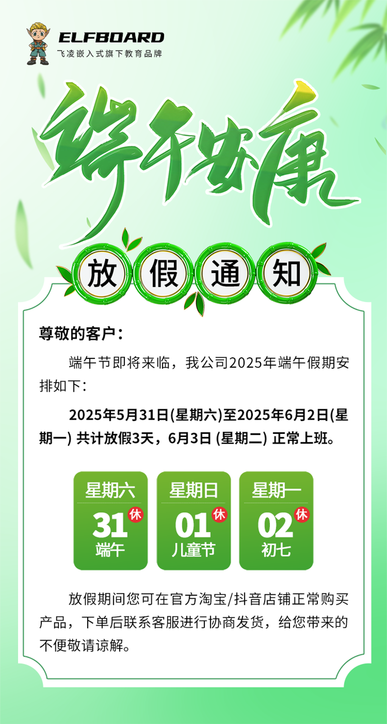 端午节即将来临,根据国家法定节假日规定,我公司2025年端午假期安排如下: