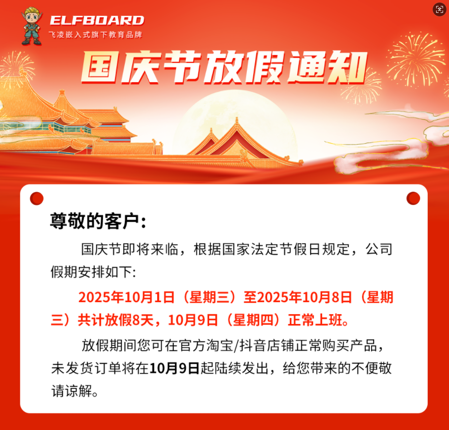 假期结束后,即10月9日,全体员工将正常上班并恢复发货。