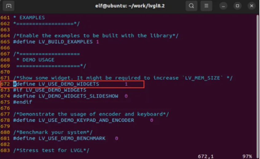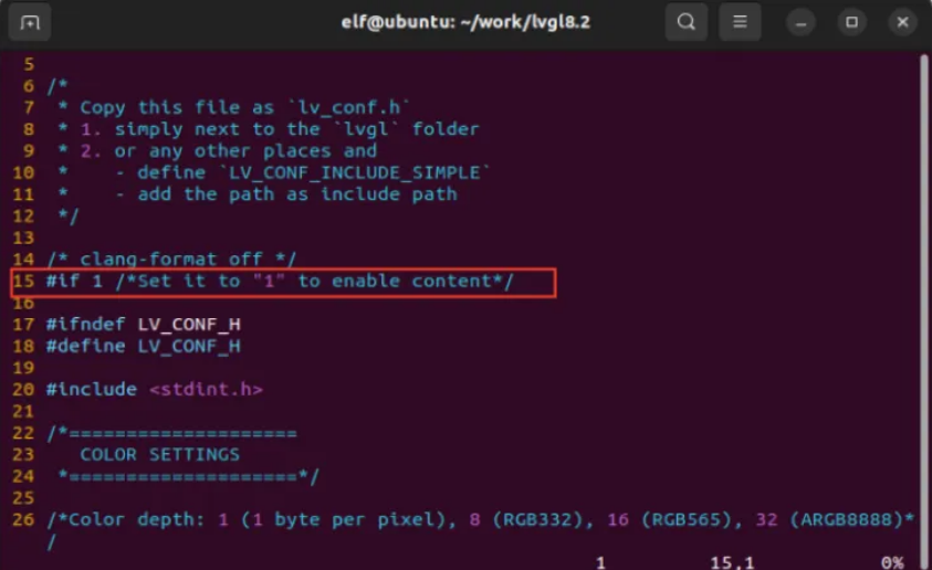 elf@ubuntu:~/work/lvgl8.2$ vi lv_port_linux_frame_buffer/lv_conf.h