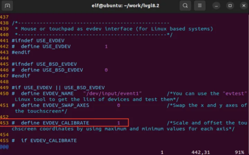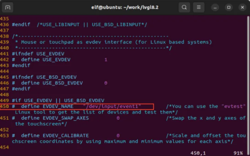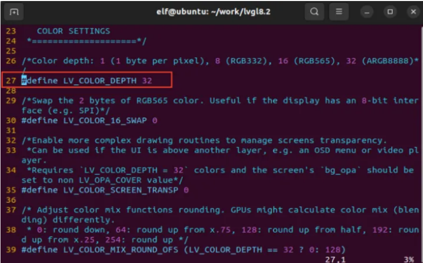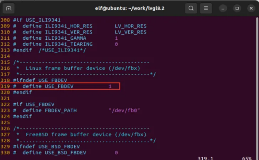 elf@ubuntu:~/work/lvgl8.2$ vi lv_port_linux_frame_buffer/lv_drv_conf.h