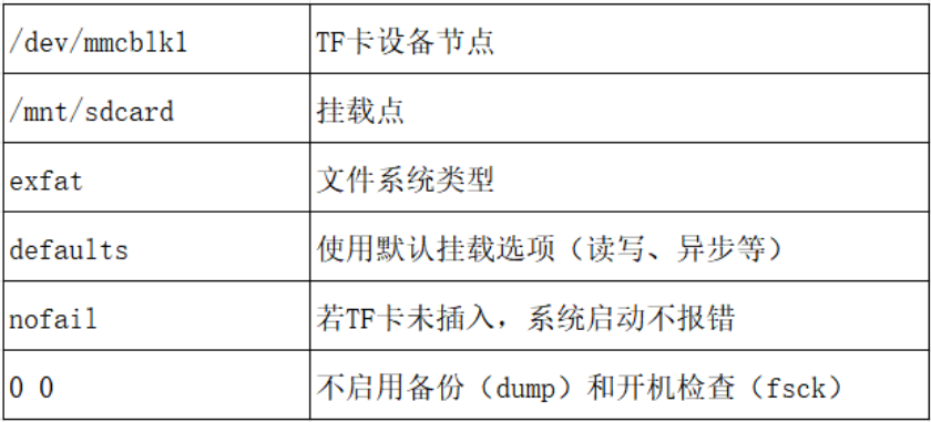 创建exfat_fs目录作为exFAT格式TF卡的挂载点,-t exfat指定文件系统类型为exFAT,将dev/mmcblk1挂载到exfat_fs/。