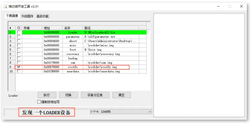 (注意: jammy-rootfs.img镜像文件的烧录起始地址应设置为0x00078000。)