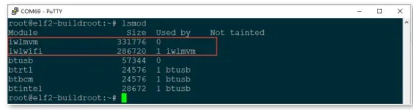 //重启之后使用lsmod查看root@elf2-desktop:~Module Size Used byiwlmvm 331776 0iwlwifi 286720 1 iwlmvmbtusb 57344 0btrtl 24576 1 btusbbtbcm 24576 1 btusbbtintel 28672 1 btusb