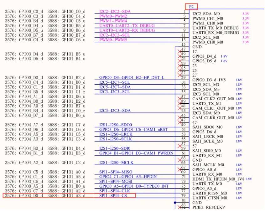 P2_79引脚对应开发板功能:SPI1--SPI4--CS(左侧SPI1-CS为3576开发板引脚功能,右侧SPI4-CS为358开发板引脚功能)