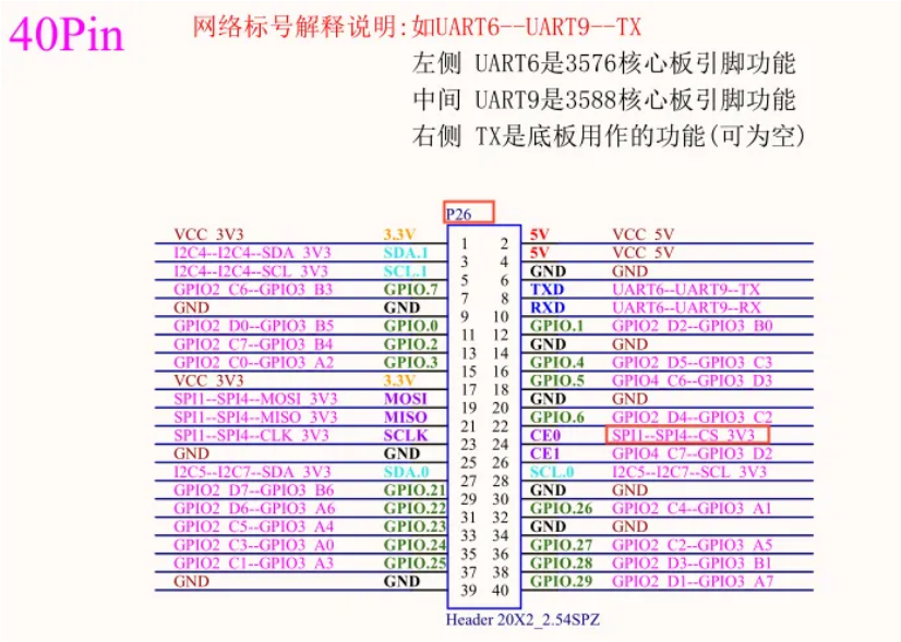 引脚选择原则:进行引脚复用时,应优先选择40Pin或20Pin连接器上的引脚,这类引脚位于开发板标准排针接口,无需额外焊接,接线更加便捷。