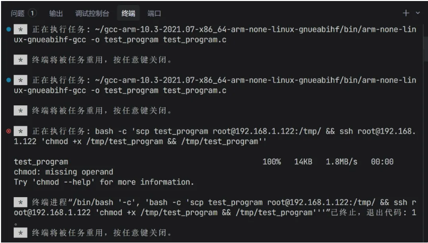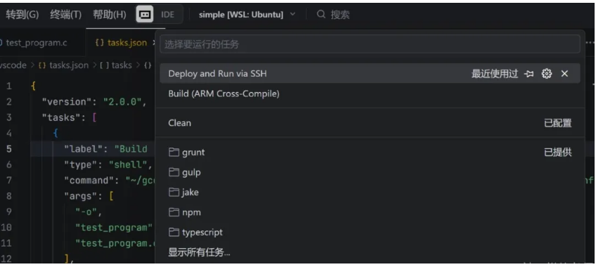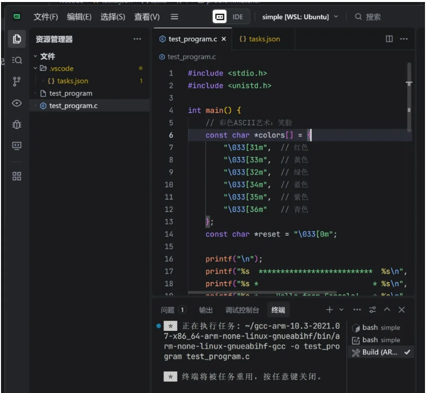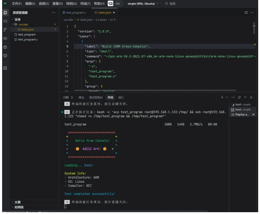 现在使用TRAE IDE菜单上的“终端→运行生成任务”,就可以交叉编译生成可执行文件test_program了。