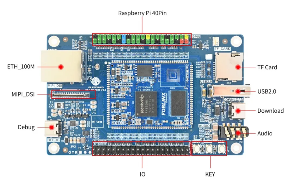 ELF-RK3506开发板的核心板与底板通过邮票孔方式连接,其核心板搭载基于ARM架构的低功耗高性能处理器RK3506。该处理器集成3核 Cortex-A7配备独立的NEON协处理器可广泛适用于计算机、手机、个 人移动互联网以及数字多媒体设备。飞凌嵌入式推出这款板子显然是吸引单片机开发者进入Linux开发领域。