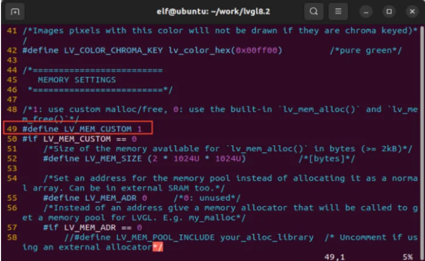 elf@ubuntu:~/work/lvgl8.2$ vi lv_port_linux_frame_buffer/lv_conf.h